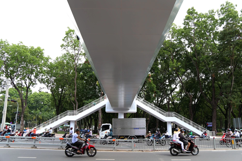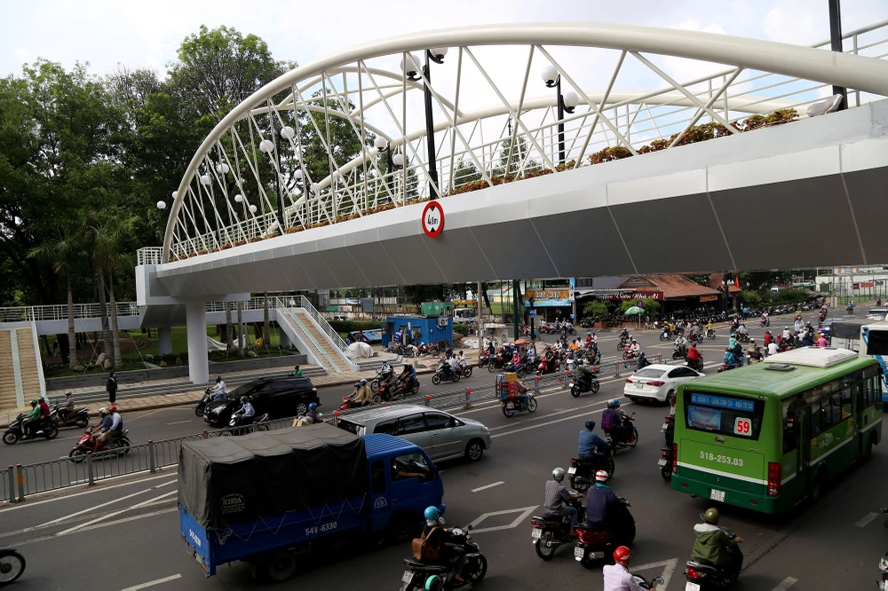 Đại diện Khu Quản lý giao thông đô thị số 1 (Sở GTVT TP.HCM) cho biết đơn vị đã hoàn thành cầu vượt bộ hành trên đường Hoàng Minh Giám nối giữa 2 khu công viên Gia Định (quận Gò Vấp, TP.HCM) sau hơn 3 tháng thi công.