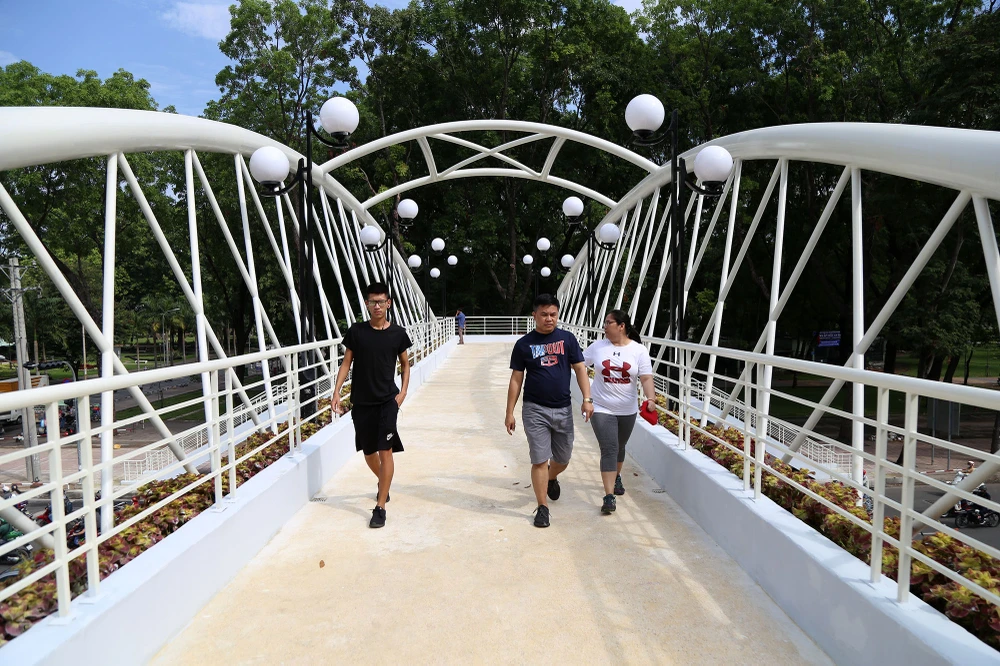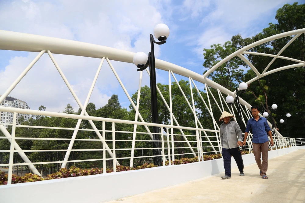 Cầu bộ hành nằm trong dự án chỉnh trang Công viên Gia Định, có tổng vốn đầu tư 74,212 tỉ đồng.