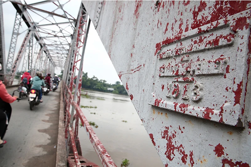 Hơn 100 năm tồn tại, bảng tên cùng năm xây dựng cầu sắt vẫn còn nguyên vẹn.