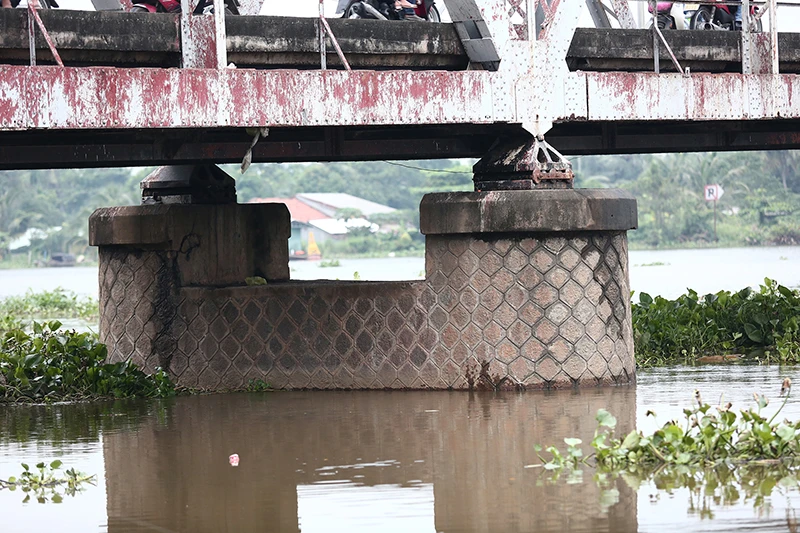 Nhiều hạng mục cây cầu đã xuống cấp.