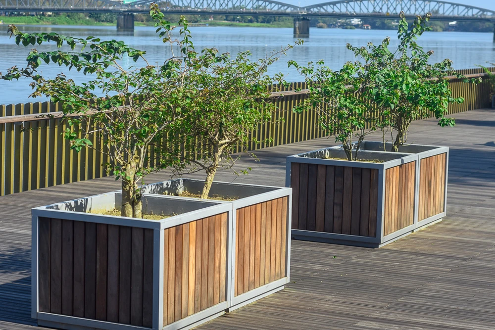 Những chậu cây được trang trí trên cầu. Ảnh: NGUYỄN DO