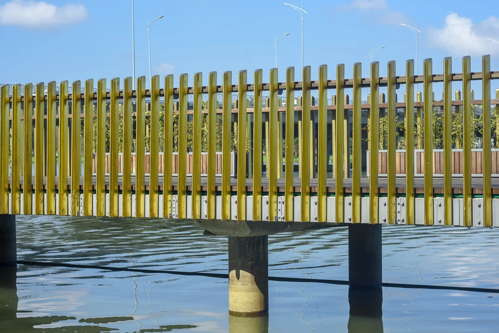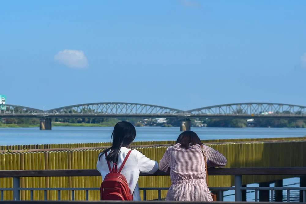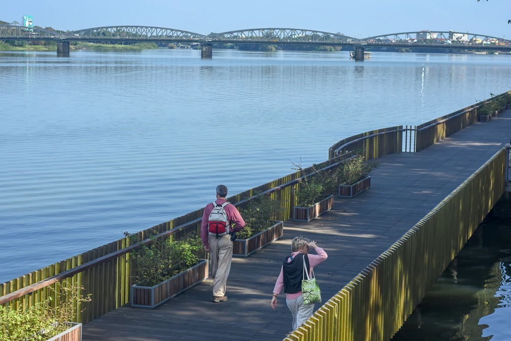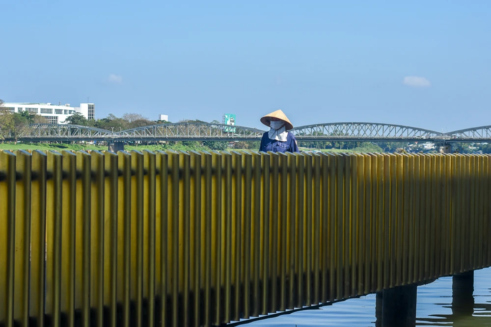 Công trình đường đi bộ trên sông Hương nằm trong dự án xây dựng mạng lưới kết nối hệ thống tuyến đường đi bộ phía Nam sông Hương do Tổ chức Koica (Hàn Quốc) tài trợ không hoàn lại 100%.  Ảnh: NGUYỄN DO