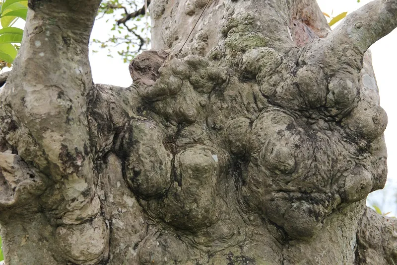 Những nốt sần sùi trên thân cây tường vi 100 năm tuổi.