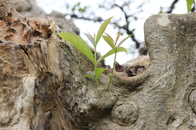 Những mầm non mọc ra từ thân cây.