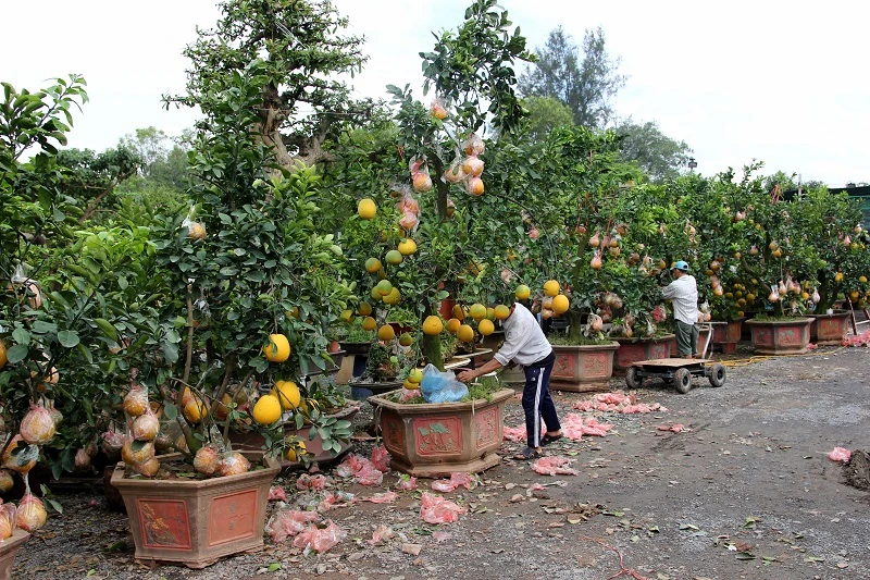 Bên cạnh các loại cây kiểng đắt tiền, bưởi Diễn năm nay cũng "cháy hàng" do sức mua mạnh.