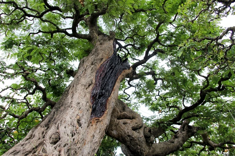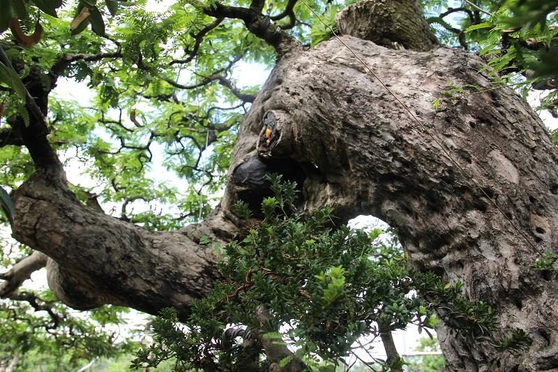 Những nhánh cây khẳng khiu, cành vươn dài ra cùng bộ thân to lớn, sần sùi đặc trưng của những cây cổ thụ.