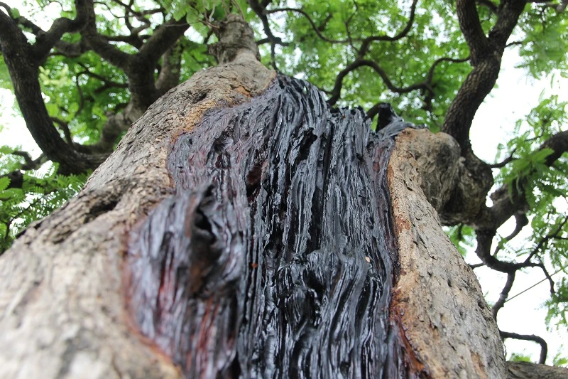 Vết trám gỗ lụa trên thân cây độc đáo do ông Hai thuê nhân công thực hiện trên thân cây.