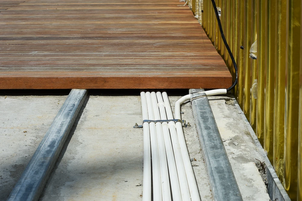 Những thớ gỗ lim Nam Phi được vận chuyển đến để lát sàn. Anh: N.DO