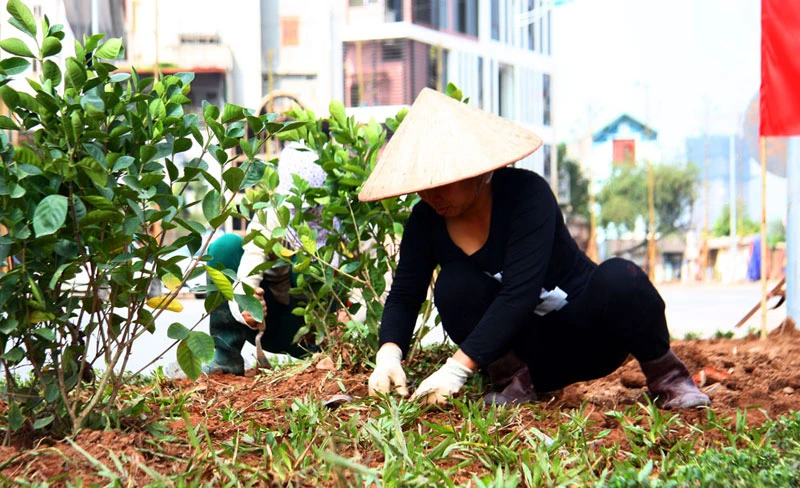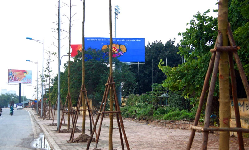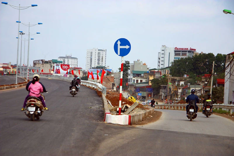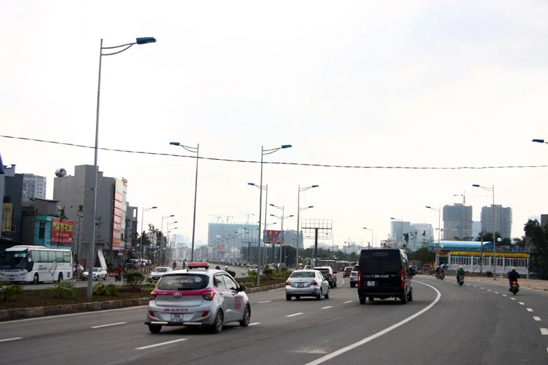 Theo ghi nhận tại tuyến đường sáng nay, cờ khánh thành được cắm dọc theo tuyến đường, các cây được trồng dọc theo hai bên. Một số công nhân đang khẩn trương trồng bổ sung cỏ ở dải phân cách giữa hai làn.