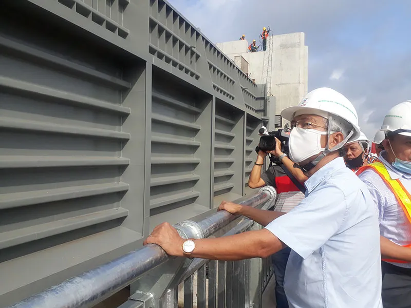 Sáng 22-8, Phó chủ tịch UBND TP.HCM Võ Văn Hoan đang quan sát cửa van ngăn triều lớn nhất Việt Nam vừa được lắp đặt.