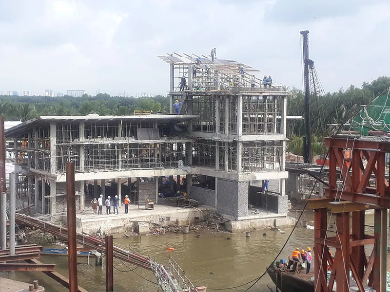 Nhà điều hành của cống ngăn triều Cây Khô đang được xây dựng.