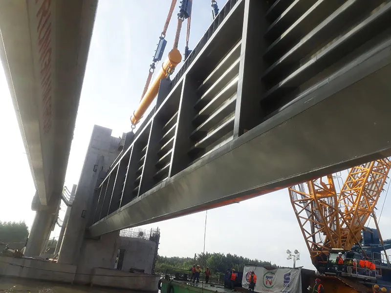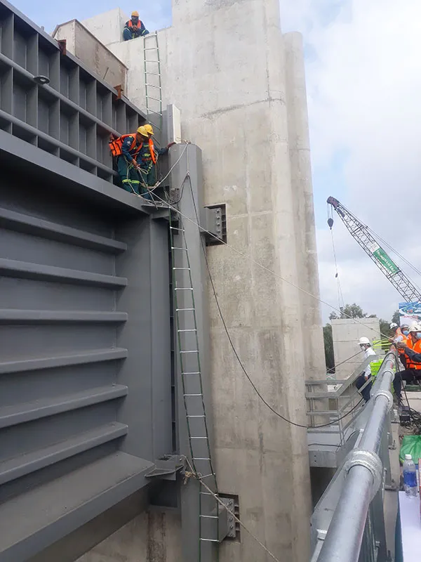 Công nhân làm việc sau khi cửa van được lắp đặt.