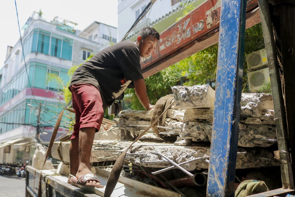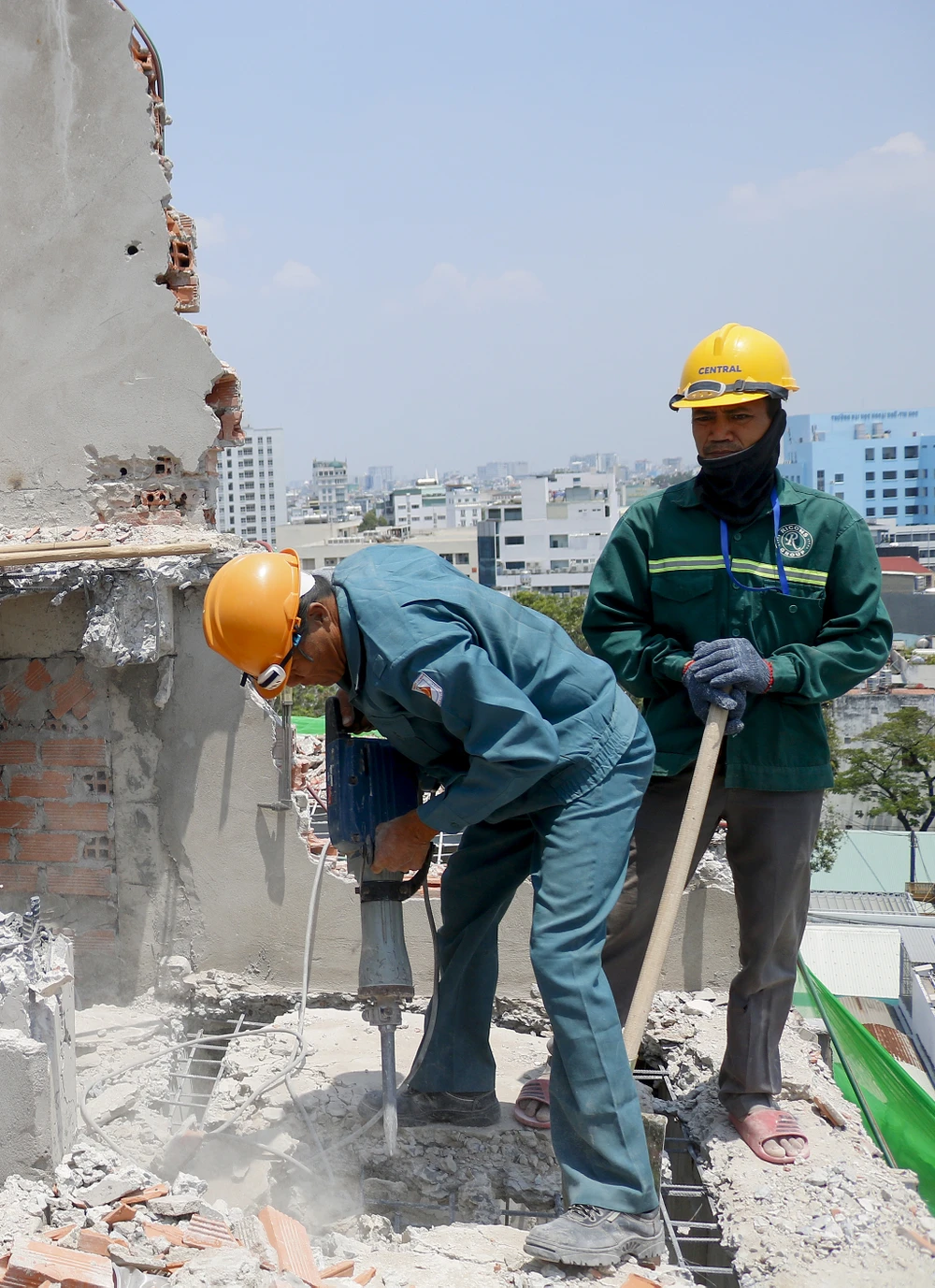 Thời tiết TPHCM nắng nóng khiến việc tháo dỡ càng trở nên vất vả.