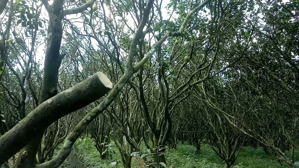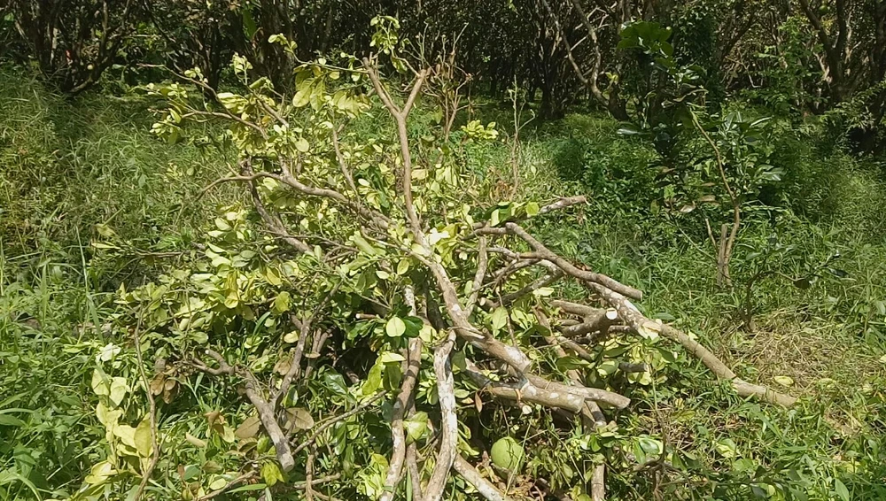 Để cứu cây, ông Lâm cùng nhiều hộ trồng bưởi khác đã đành đoạn cắt tỉa cành, có cây bị đốn trụi chỉ còn thân để hạn chế tiêu hao chất dinh dưỡng của cây, tuy nhiên mọi nổ lực cũng không thể cứu vãn được.