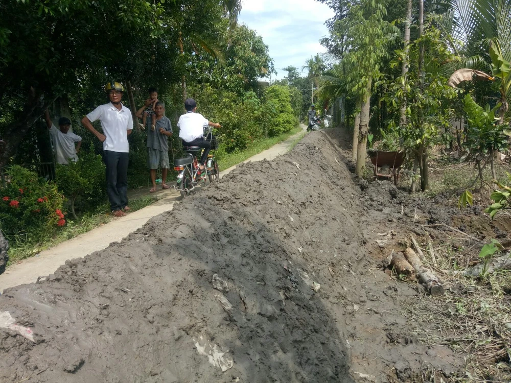 Trong khi đó, người dân ấp Mỹ Thới 1 cho biết, triều cường dân cao đã khiến cho nhiều đoạn đê của ấp Mỹ Thới 1 bị vỡ dẫn đến nước tràn vào gây ngập hàng trăm công bưởi của người dân.
