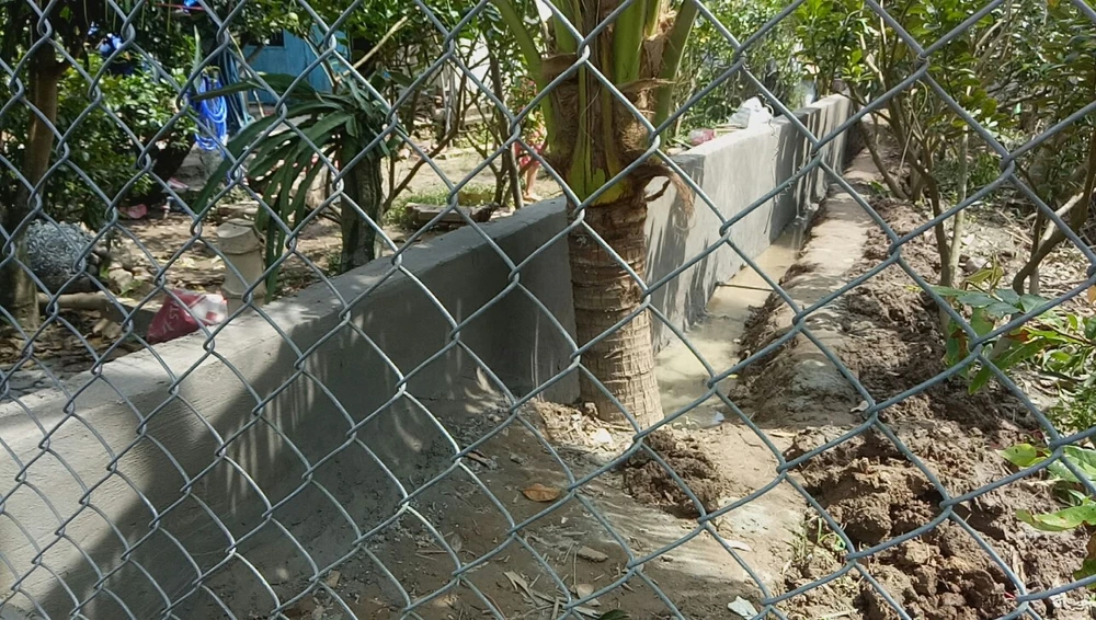Bức tường đê mới xây của gia đình ông Nhiều