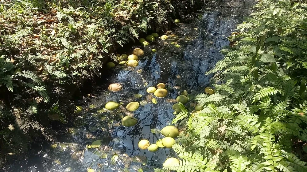 Sau đó tôi ra kiểm tra thì phát hiện khoảng 3.000m2 bưởi có dấu hiệu bị ngập úng, trái rụng lệch đất, phải bán đấu đế với giá 1.000 đến 1,500 đồng/kg. Trong khi đó giá hiện tại là 14.000 đến 15.000 đồng/kg.