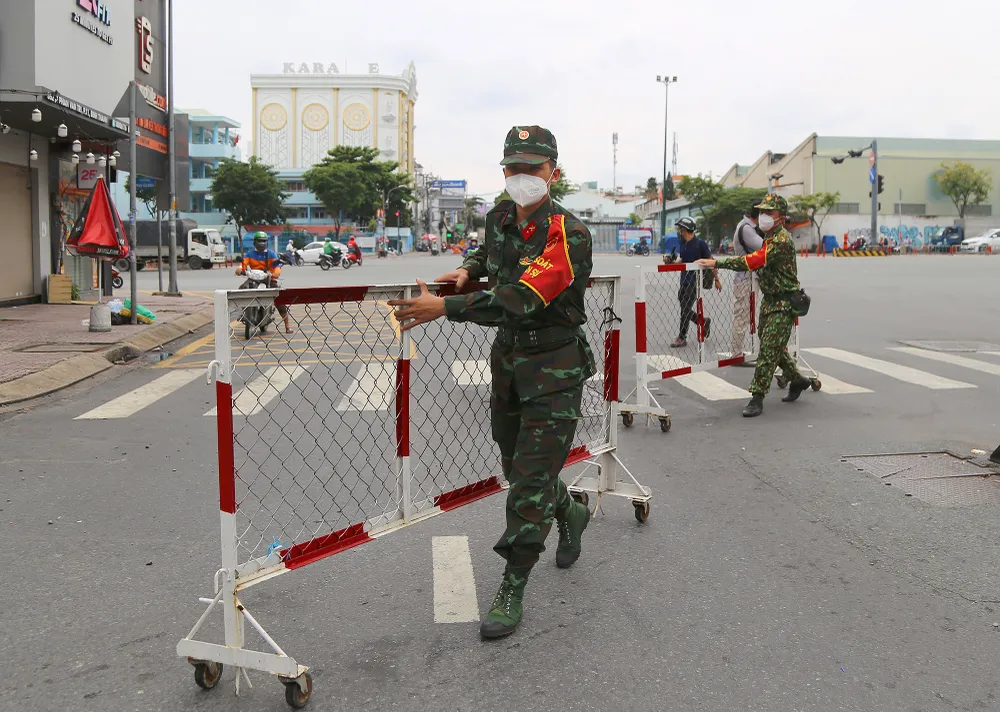 Ông Nguyễn Kiên Trung, Phó chủ tịch UBND phường 5 cho biết, trong sáng nay theo chỉ đạo của UBND quận thì 16 phường trên địa bàn quận sẽ đồng loạt ra quân để tháo dỡ các chốt. Trên địa bàn phường 5 hiện có khoảng 14 chốt kiểm soát ở 14 khu phố.