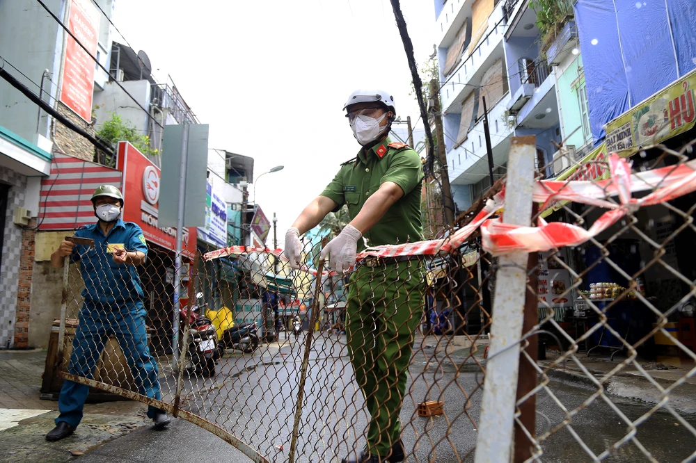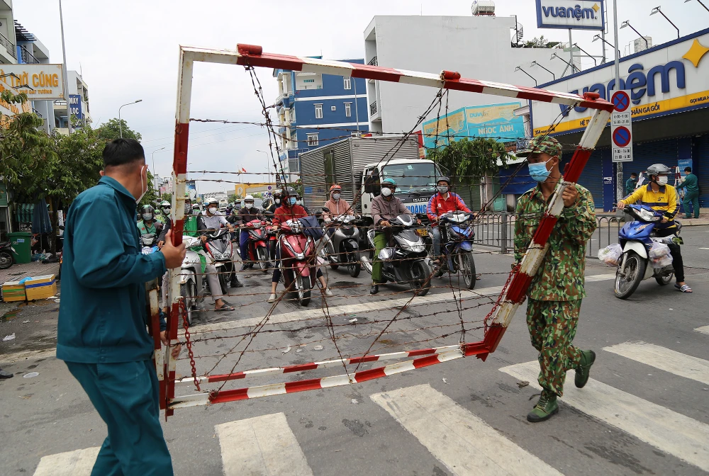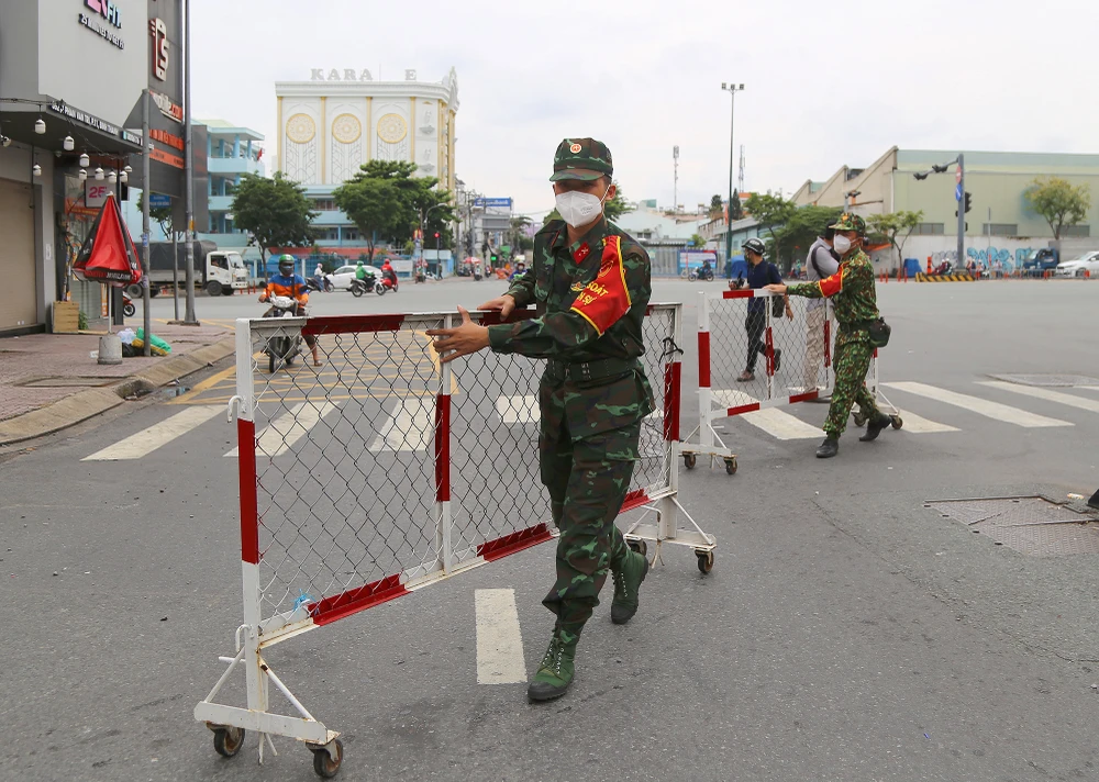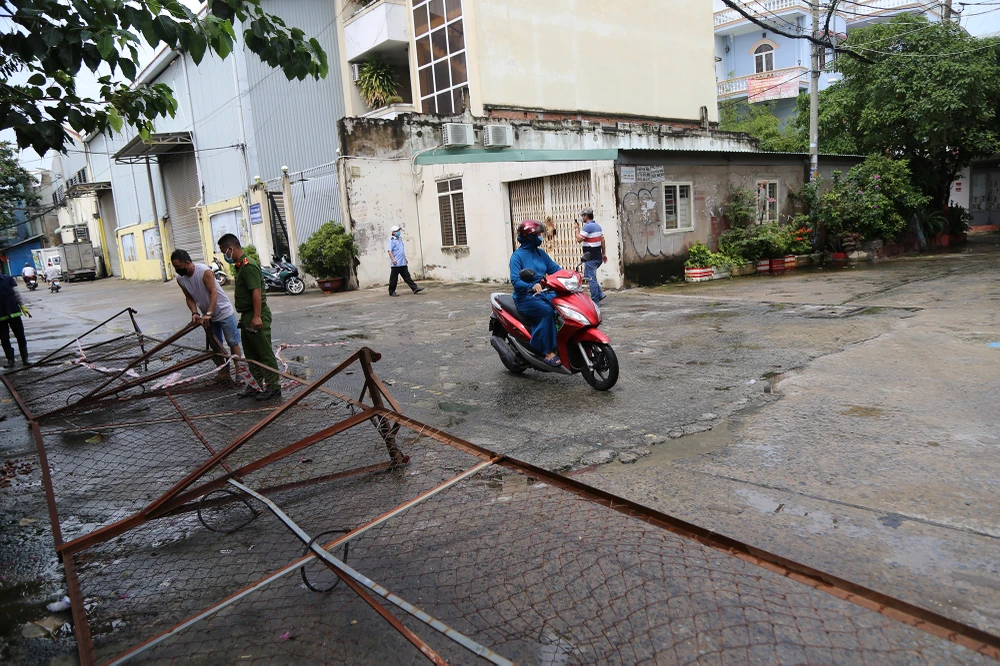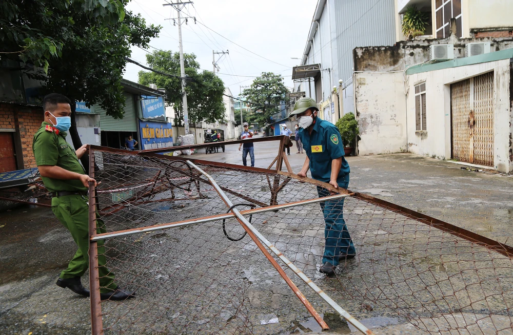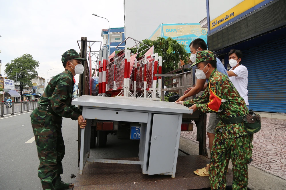 Theo ghi nhận của PV tại phường 5, quận Gò Vấp, TP.HCM, ngay từ sáng sớm các lực lượng của UBND phường, Công an, dân quân tự vệ đã tiến hành tháo dỡ các chốt kiểm soát, chốt phong toả trên địa bàn.