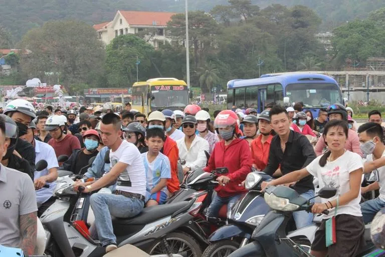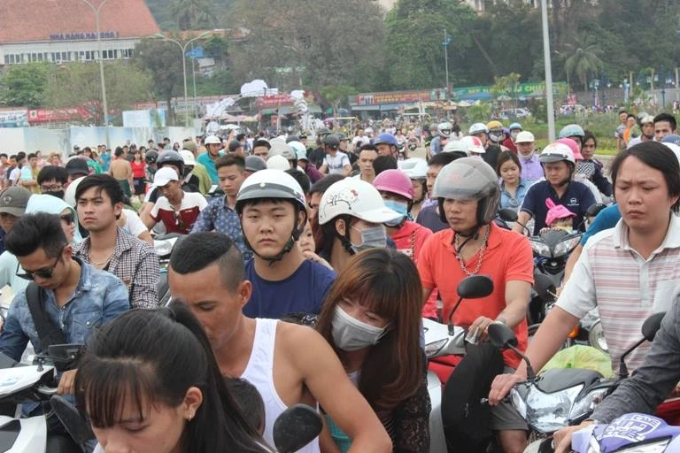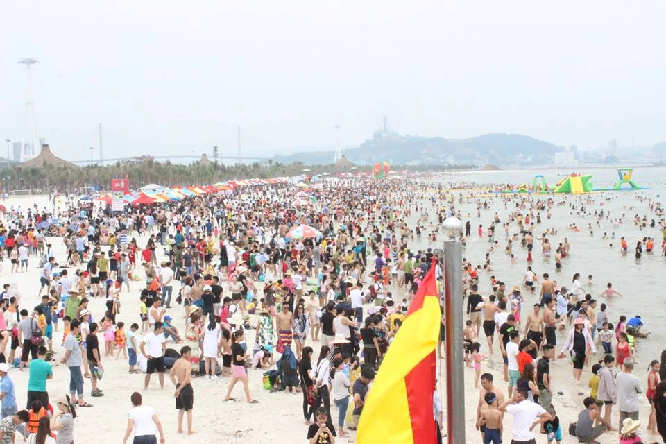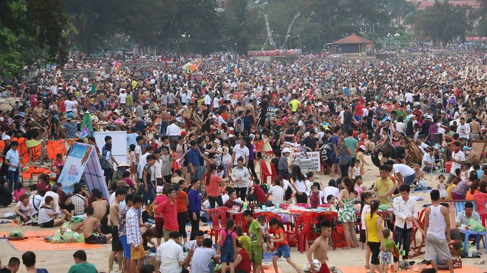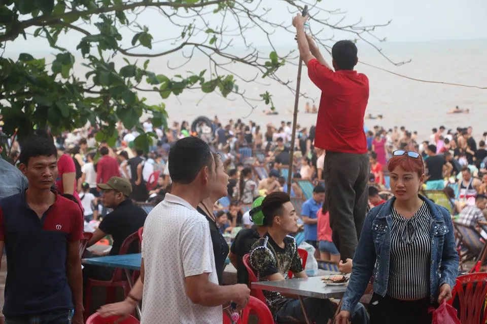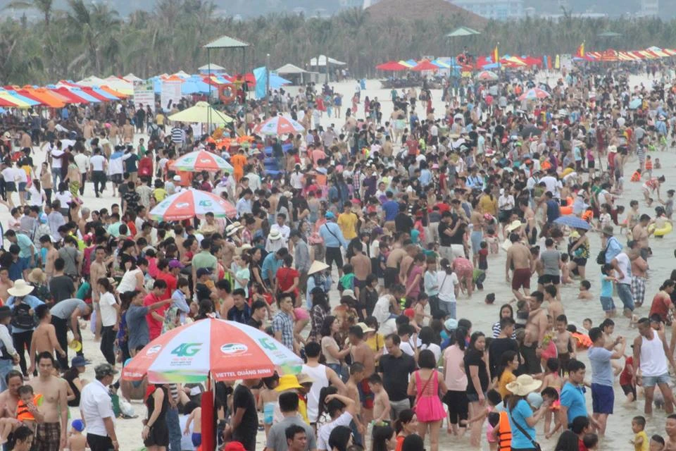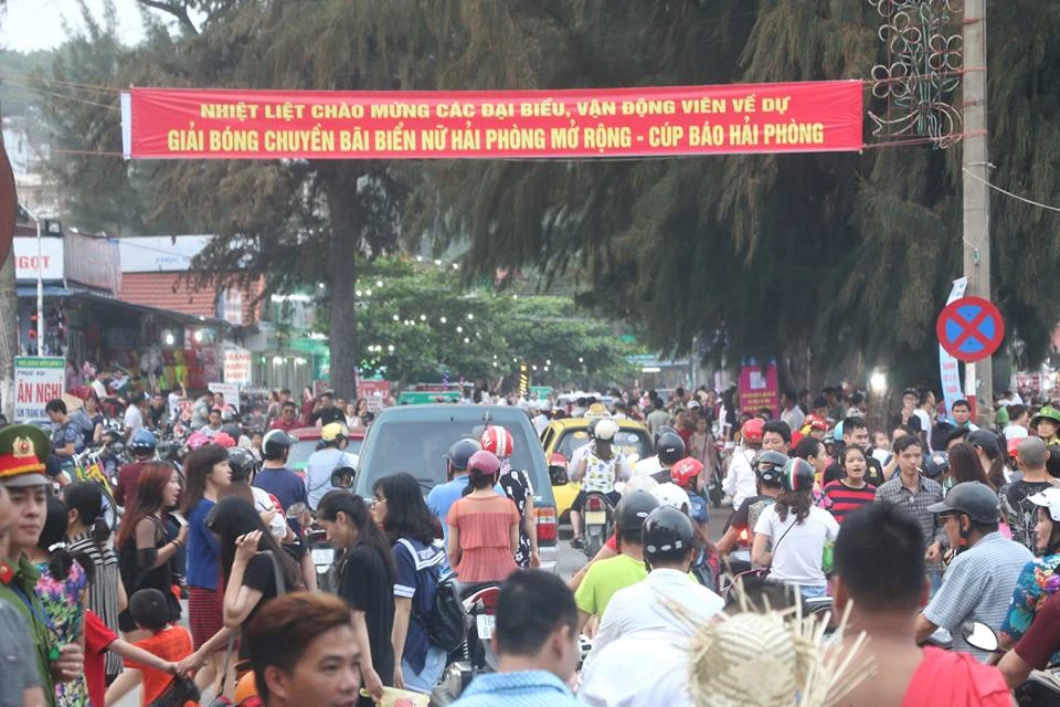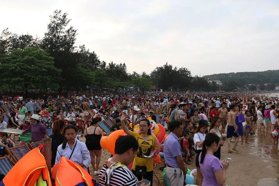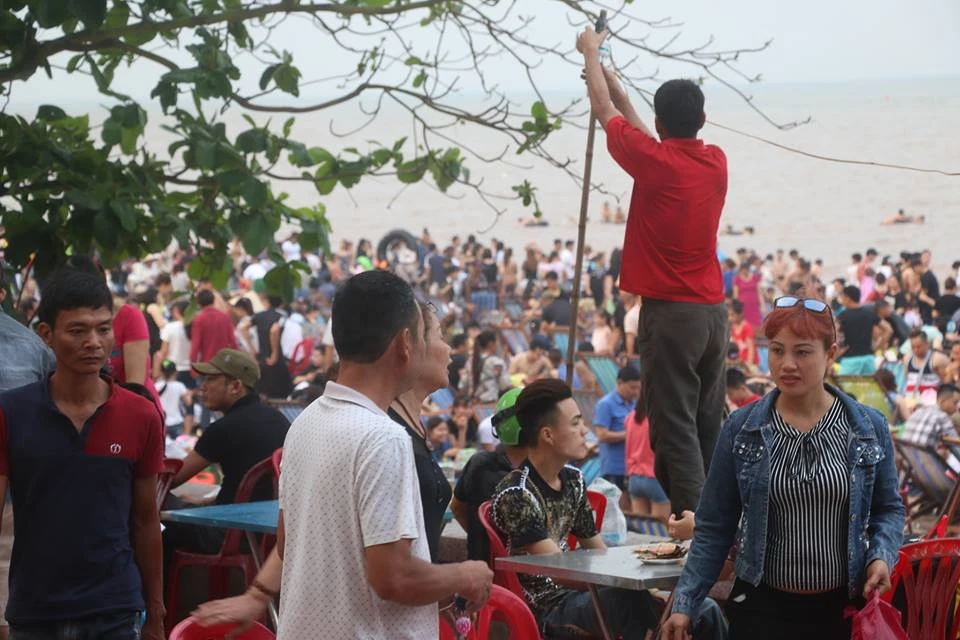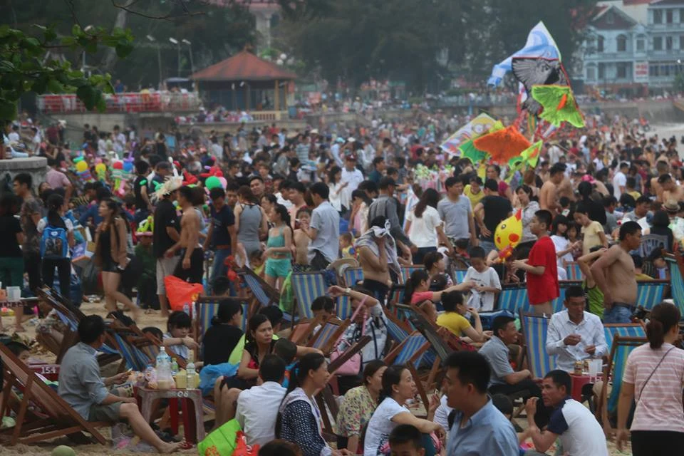 Các du khách chen chúc trong "biển" người ở Đồ Sơn