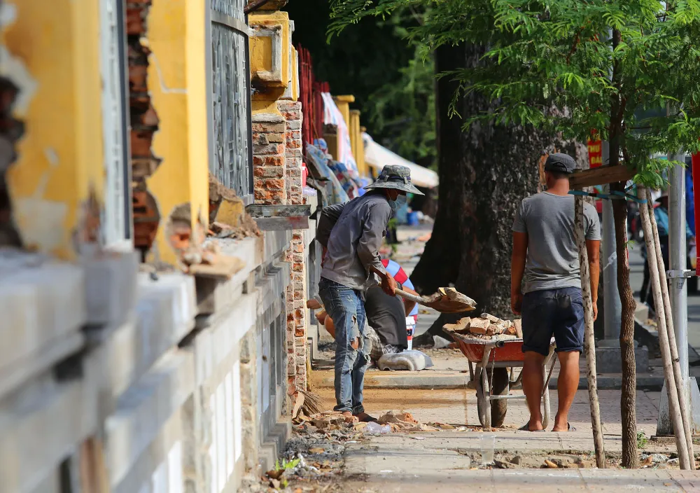 Hàng rào tường bao quanh khu lăng mộ của Tả quân Lê Văn Duyệt đang được trùng tu, nâng cấp.