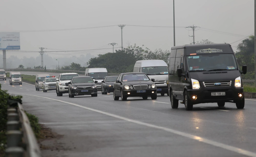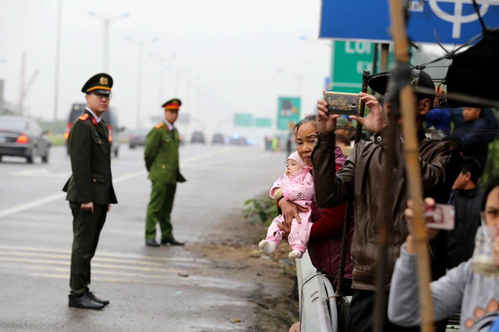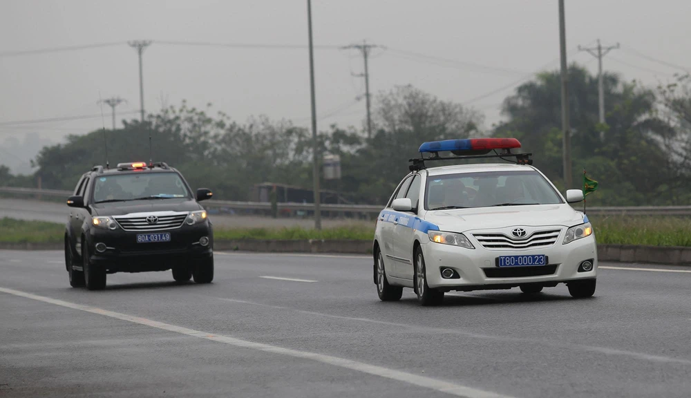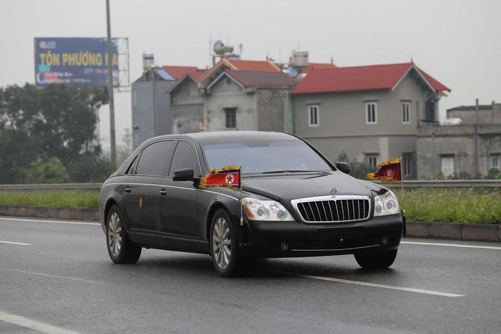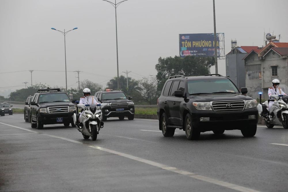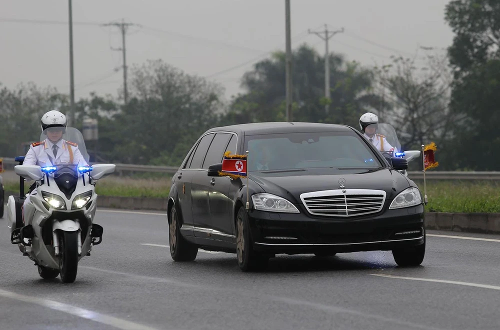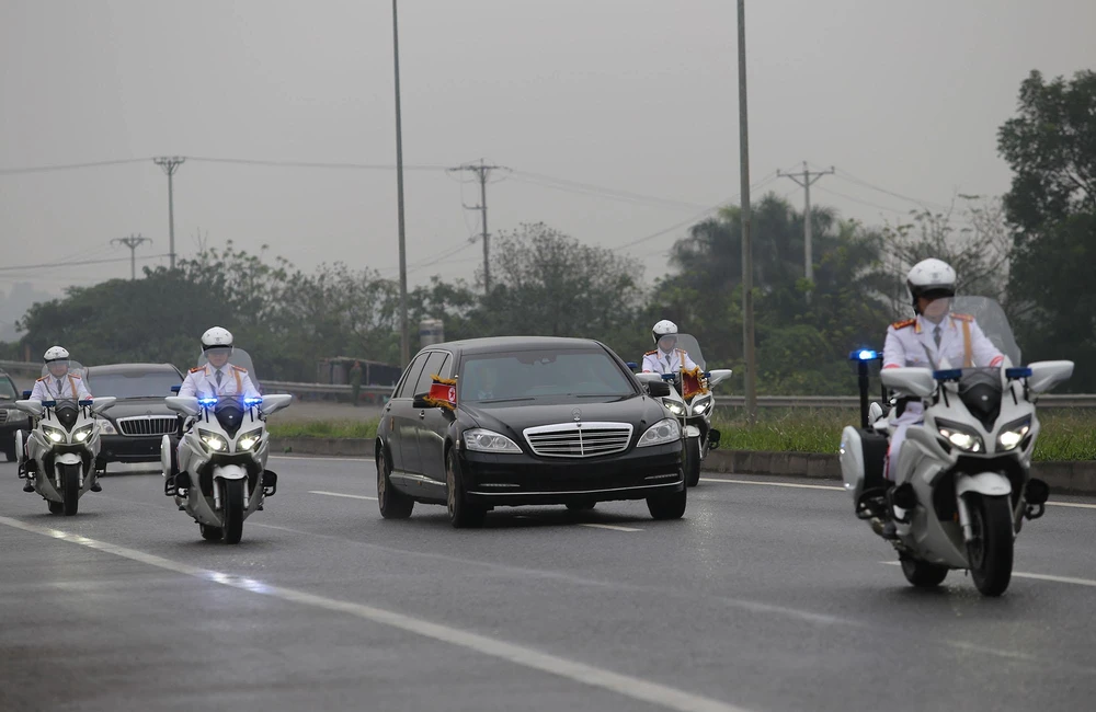 Dòng xe được hộ tống bởi nhiều lực lượng an ninh Việt Nam và cả Triều Tiên.