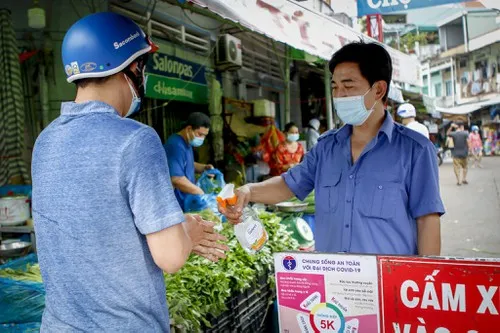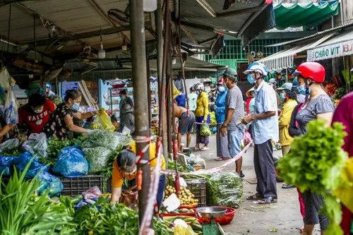 Theo đó, chợ giữ lại 2 ngõ ra và vào để thực hiện các biện pháp phòng dịch, đồng thời siết chặt việc tụ tập đông người.