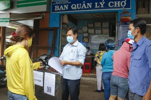 Bà Nguyễn Thị Lan (Trưởng ban quản lý chợ) cho biết, chợ sẽ áp dụng kiểm tra phiếu chẵn lẻ từ ngày 1-7. Khi đi vào hoạt động, người dân đến chợ phải theo khung giờ đã đăng kí, nhân viên chợ sẽ ghi lại số thứ tự thẻ vào sổ nhật kí. Như vậy, ban quản lý vừa điều phối được số lượng người đến chợ trong thời điểm nhất định vừa có thể truy vết thông tin nhanh chóng.