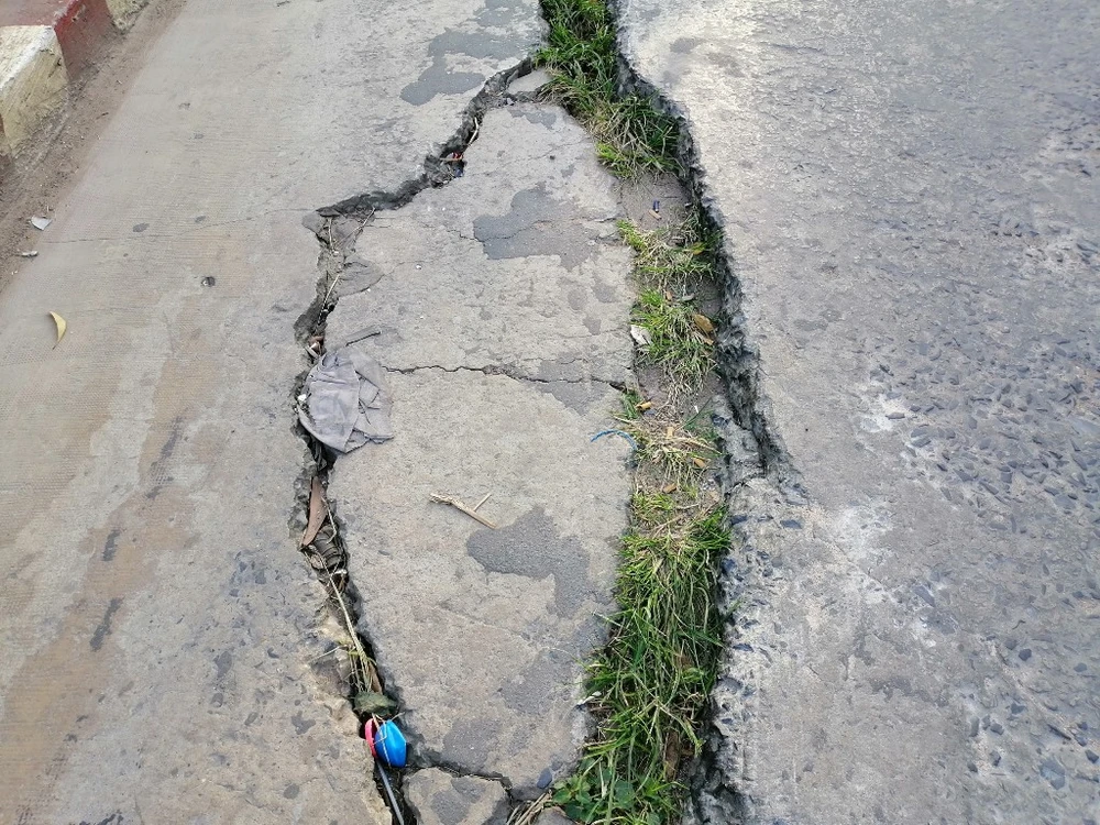 Các vết nứt có chiều rộng khoảng 2-5 cm rất nguy hiểm cho việc đi lại của người tham gia giao thông.