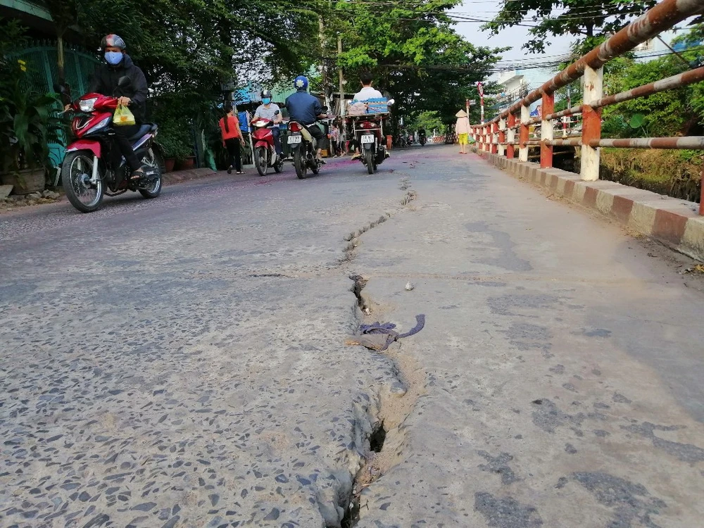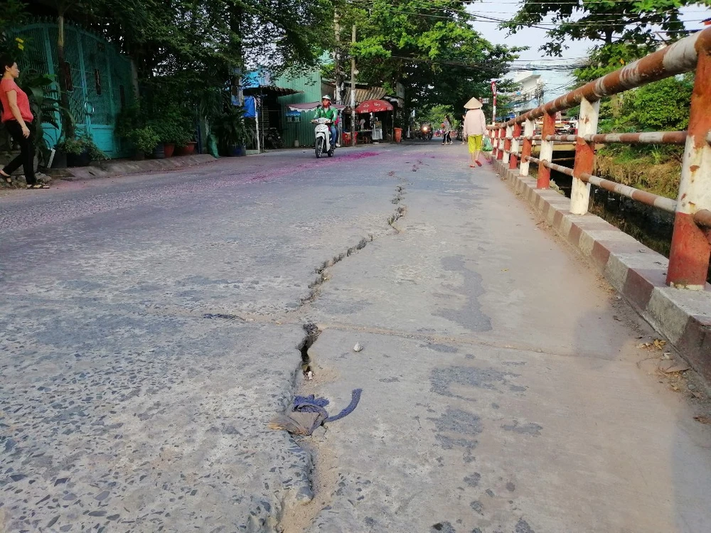 Đường Chiến Lược (quận Bình Tân) hiện nay xuất hiện nhiều vết rạn nứt có nguy cơ lan rộng ra.