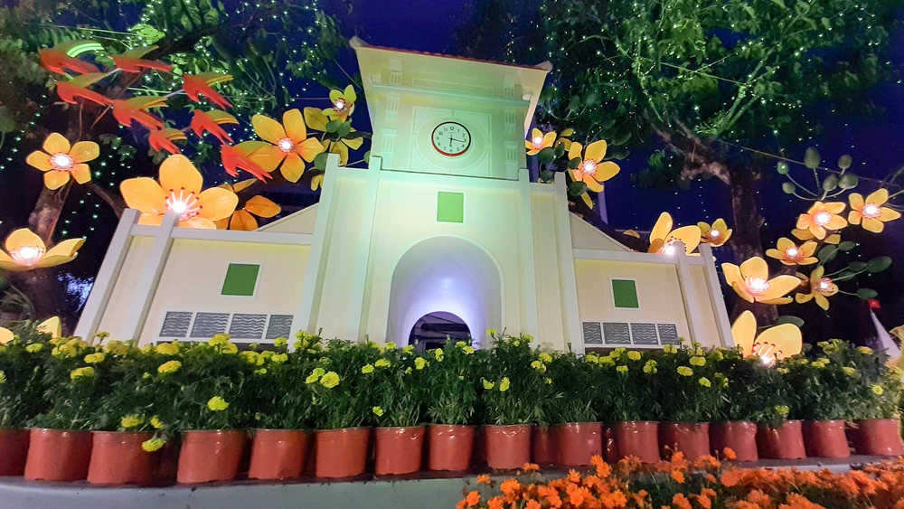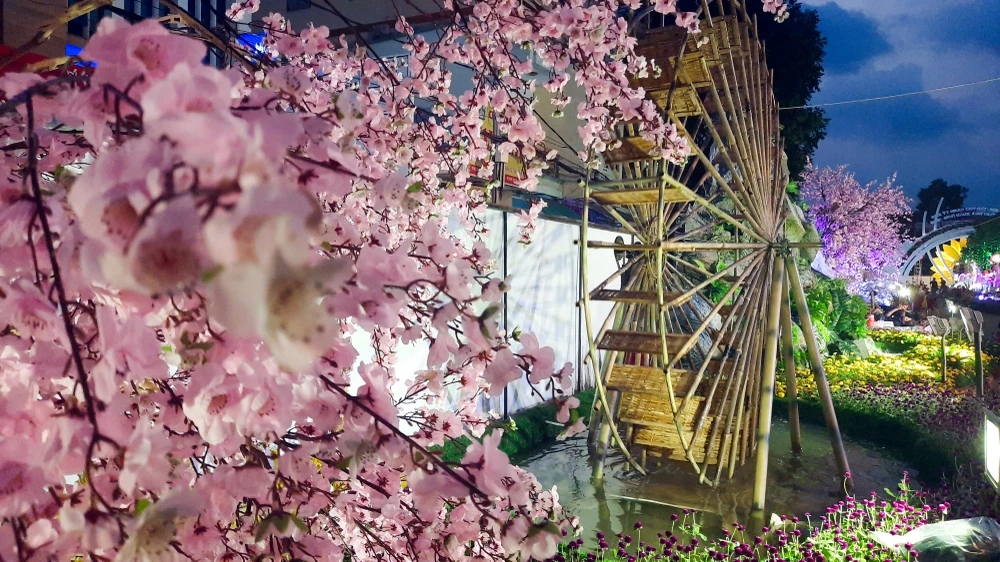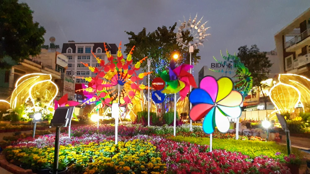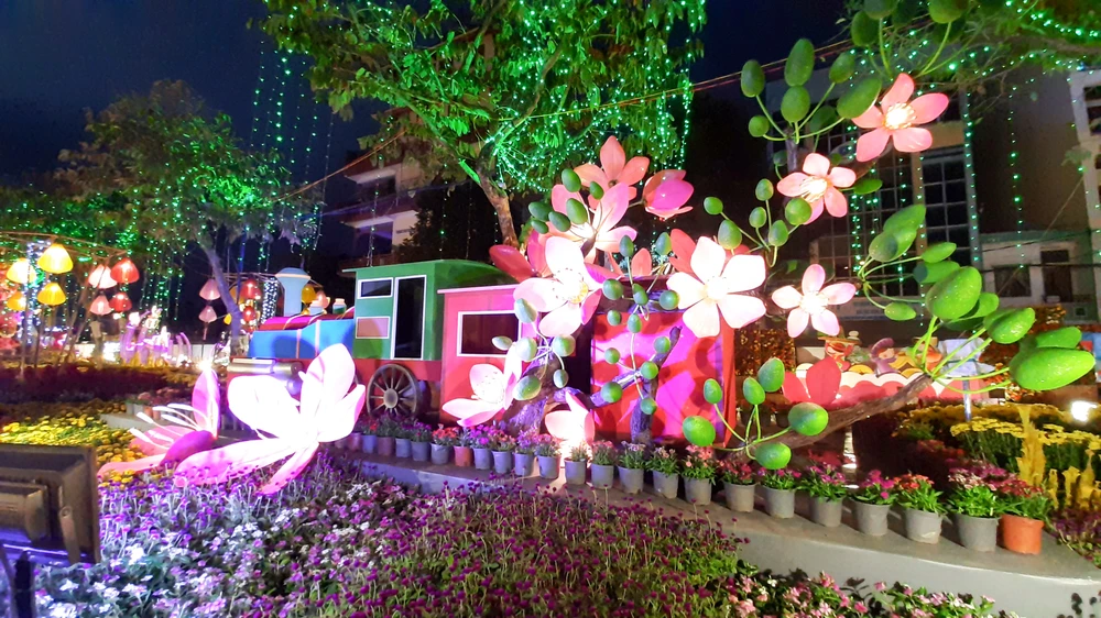 Một tiểu cảnh xuân vui tươi trên đường hoa Cần Thơ.