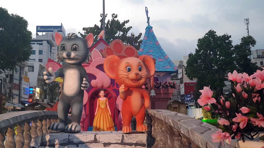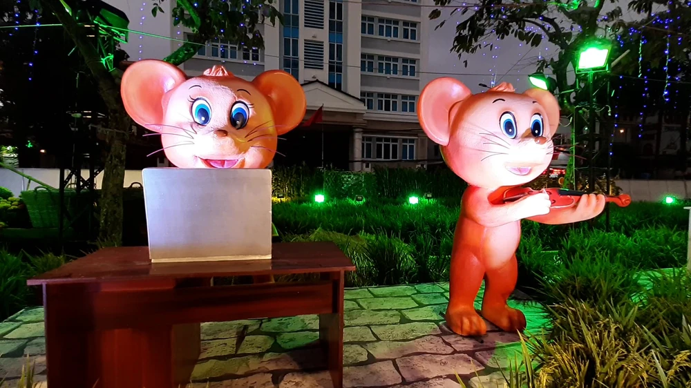 Điểm nhấn của đường hoa là tiểu cảnh chuột tài lộc xoay vòng tròn.
