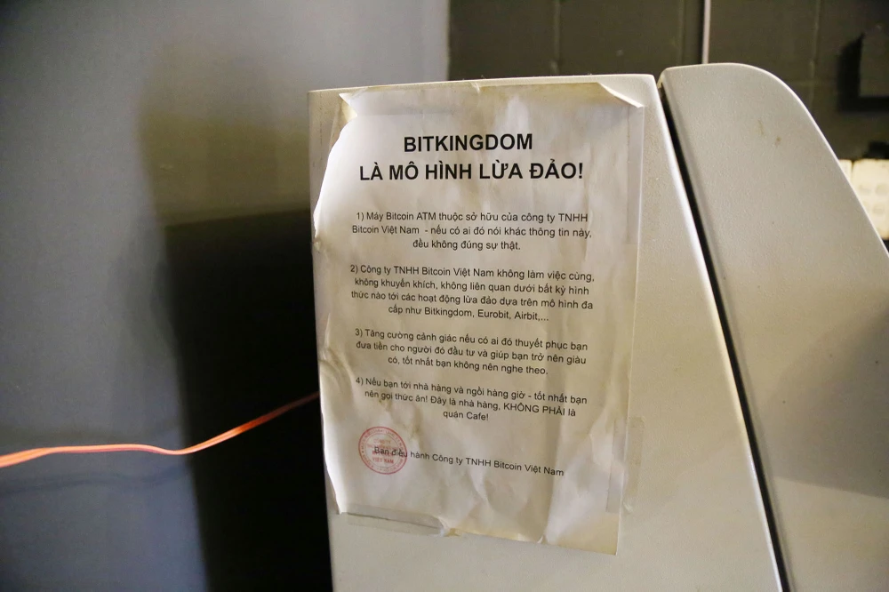 Bên cạnh máy BTM là dòng thông báo từ Bitcoin Việt Nam; do lợi dụng sự có mặt của chiếc máy này, nhiều cá nhân, tổ chức kinh doanh bitcoin đa cấp không lành mạnh đã đến quay phim, chụp hình và "nhận vơ" máy thuộc sở hữu của họ nhằm lừa gạt người dùng.