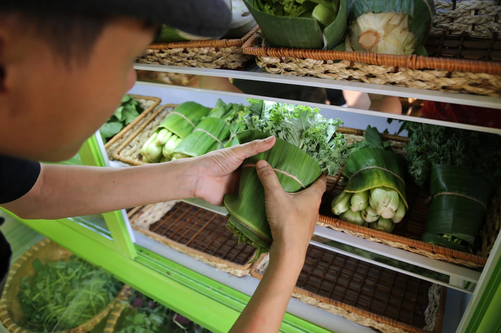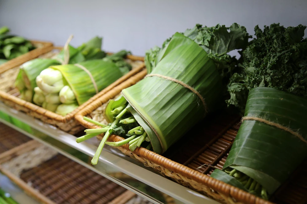 Dù chỉ mới gói rau củ bằng lá chuối một thời gian song hình thức này đã nhận được sự ủng hộ của khách hàng.