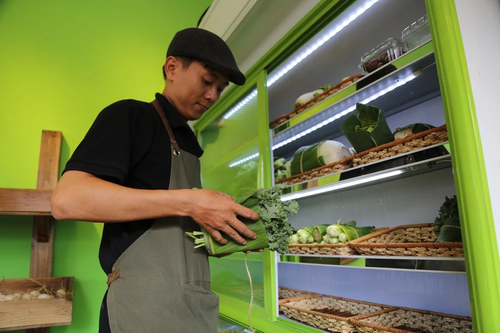 Nói về ý tưởng sử dụng lá chuối gói rau củ, Thảo cho biết lá chuối không xa lạ gì với người dân nông thôn cũng như thành thị, nó vốn rất quen thuộc, nên anh muốn đưa vào cửa hàng của mình, vừa đem chút quê lên phố, vừa tiết kiệm và xây dựng ý thức là bảo vệ môi trường.