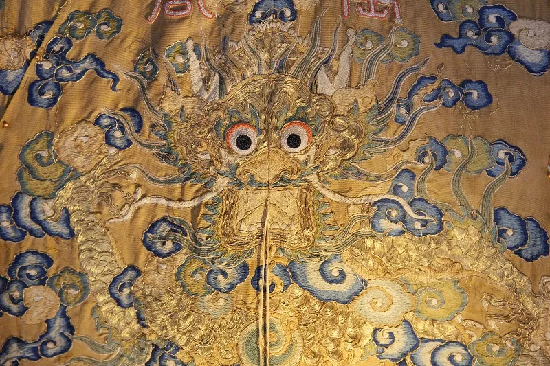 Chiếc áo hoàng bào thường triều của vua Đồng Khánh.