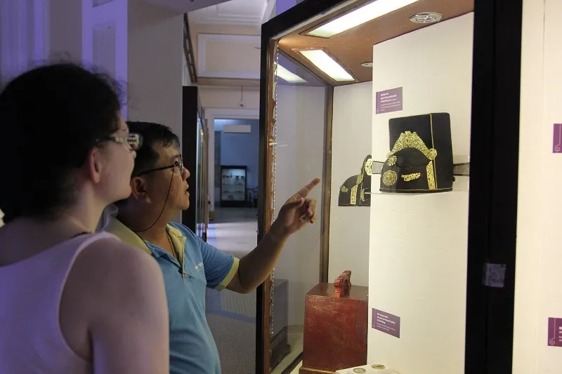 Khách tham quan chăm chú quan sát các hiện vật lịch sử.