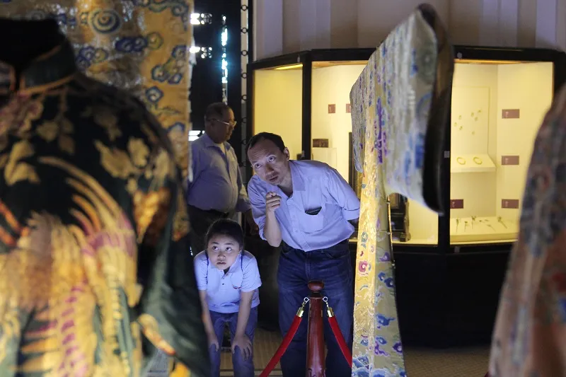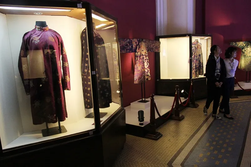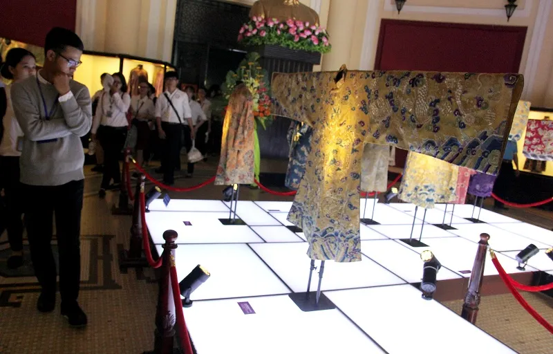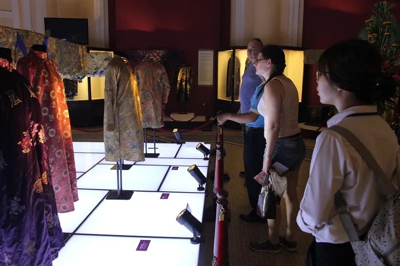 Khách tham quan các lễ phục cung đình tại triển lãm.