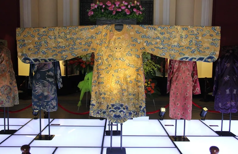 Nữ phục cung đình được trưng bày ở triển lãm.