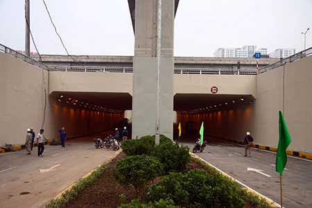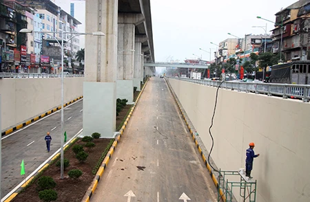 Về cơ bản, các hạng mục đã hoàn thành. Trong buổi sáng 7-1, các công nhân vẫn làm việc tại hầm chui ở nút Thanh Xuân khi họ tiến hành hoàn thiện các chi tiết nhỏ phía trong và ngoài của hầm.