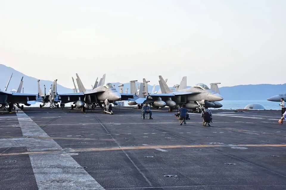 Tàu Carl Vinson mang theo 74 máy bay chiến đấu, giám sát và vận tải, gồm F18C, F18E/F Super Hornet, EA-18G Growler, E-2 Hawkeye, Sikorsky MH-60S Seahawk và Grumman C-2 Greyhound.