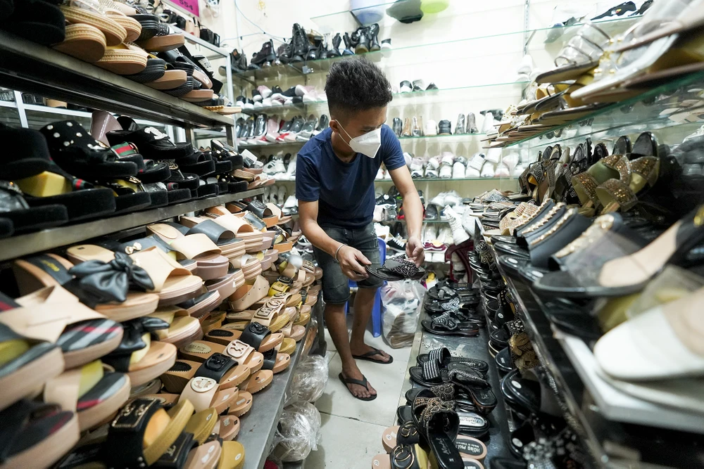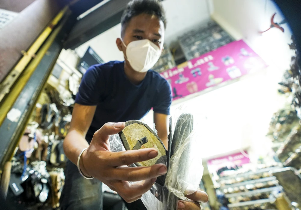 Trên cùng trục đường phố thời trang Nguyễn Trãi (quận 5), tiệm dép của anh Lâm Văn Bình là một trong những tiệm tích cực chuẩn bị cho việc mở cửa.
