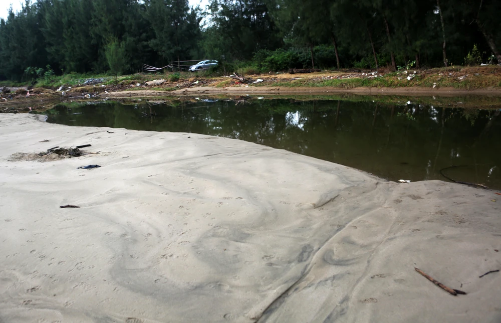Biển xâm thực kéo theo cát trắng vùi lấp hơn nửa ao cá của người dân và tiến sát khu vực trụ sở làm việc của Trạm kiểm soát Biên phòng Lạch Hới (thuộc Đồn biên phòng Hoằng Trường).