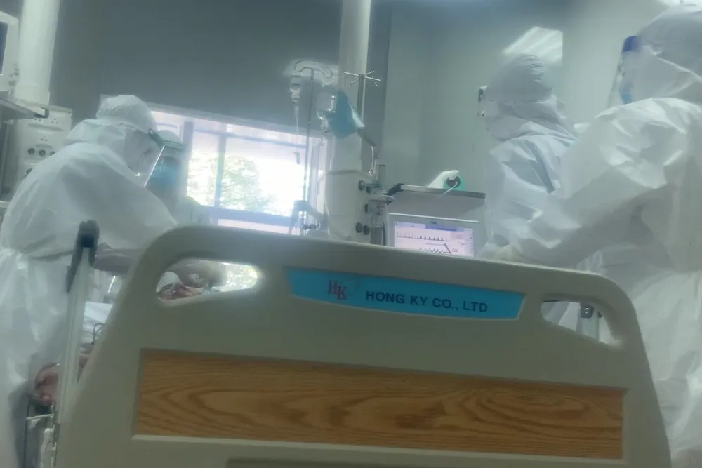 Anh Nguyễn Xuân Hoàng-Sinh viên đại học Y Hà Nội (chuyên khoa Bác sĩ nội trú hồi sức cấp cứu) cho biết, ở đây nhân lực còn thiếu nhưng số ca nhiễm nặng liên tục tăng gây áp lực rất lớn cho đội ngũ y bác sĩ đặc biệt là đội ngũ điều dưỡng. Vì bệnh nhân thở máy nên đội ngũ điều dưỡng phải chăm sóc bệnh nhân toàn bộ, từ cho thuốc, cho ăn, thay bỉm, hút đờm…Ngoài ra, họ còn phải làm công việc hành chính, viết hồ sơ theo dõi…