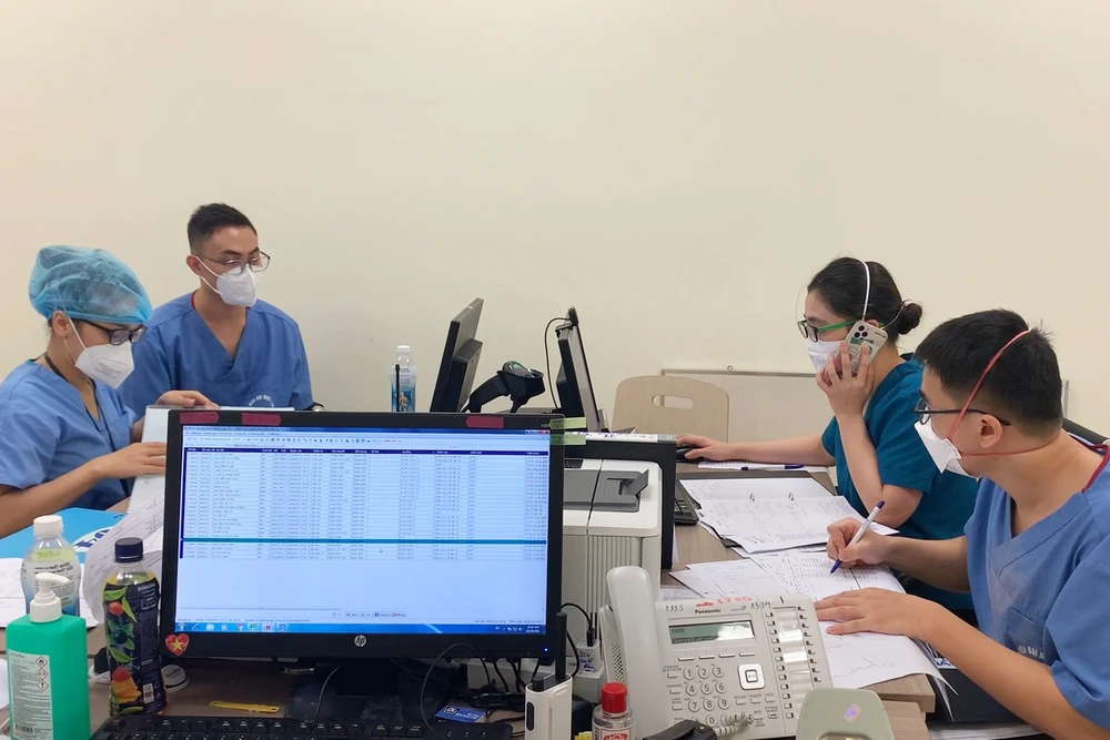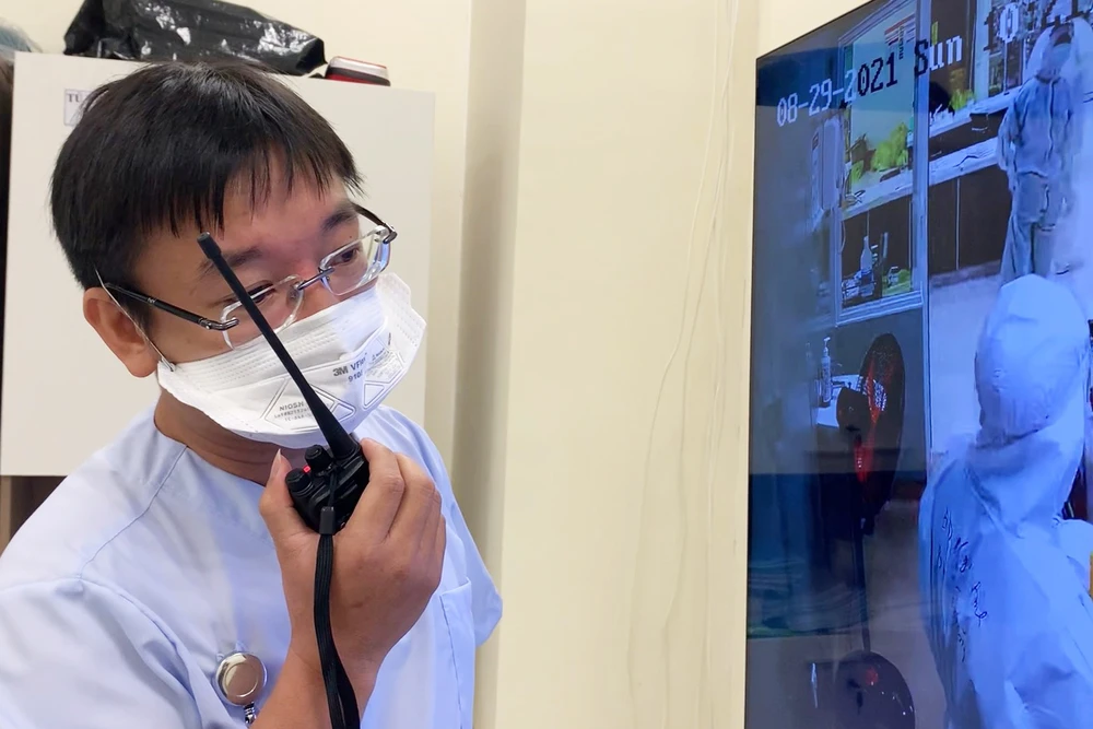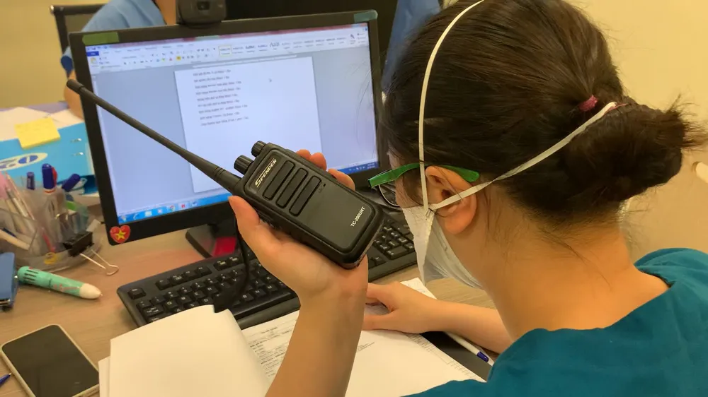 Đội ngũ bác sĩ ở khu điều hành và khu điều trị liên tục trao đổi với nhau qua bộ đàm để hội chẩn, phối hợp điều trị cho từng bệnh nhân.