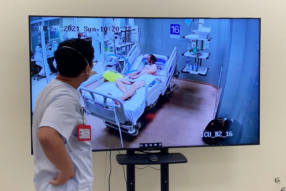 Ở khu điều hành, các bác sĩ liên tục theo dõi những thông số của bệnh nhận được truyền về từ khu điều trị.