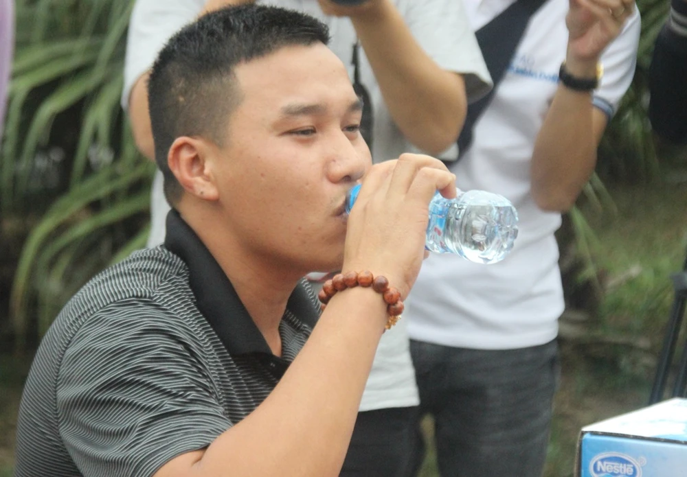 Lái xe sẽ được phát một chai nước lọc còn nguyên tem để uống, sau đó một cán bộ CSGT hướng dẫn và đưa vào khu vực nhà vệ sinh để lấy nước tiểu.