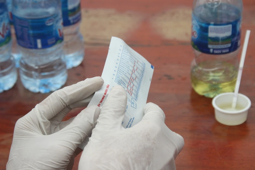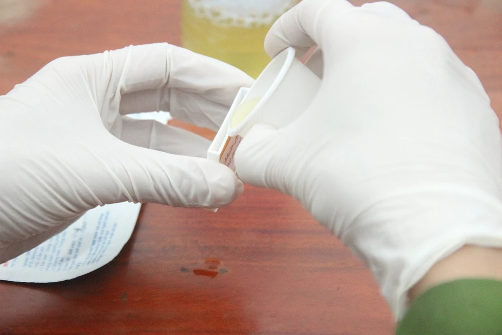 Mẫu nước tiểu sẽ được hai cán bộ của Viện khoa học hình sự test trực tiếp bằng que thử, trước sự chứng kiến của tài xế.