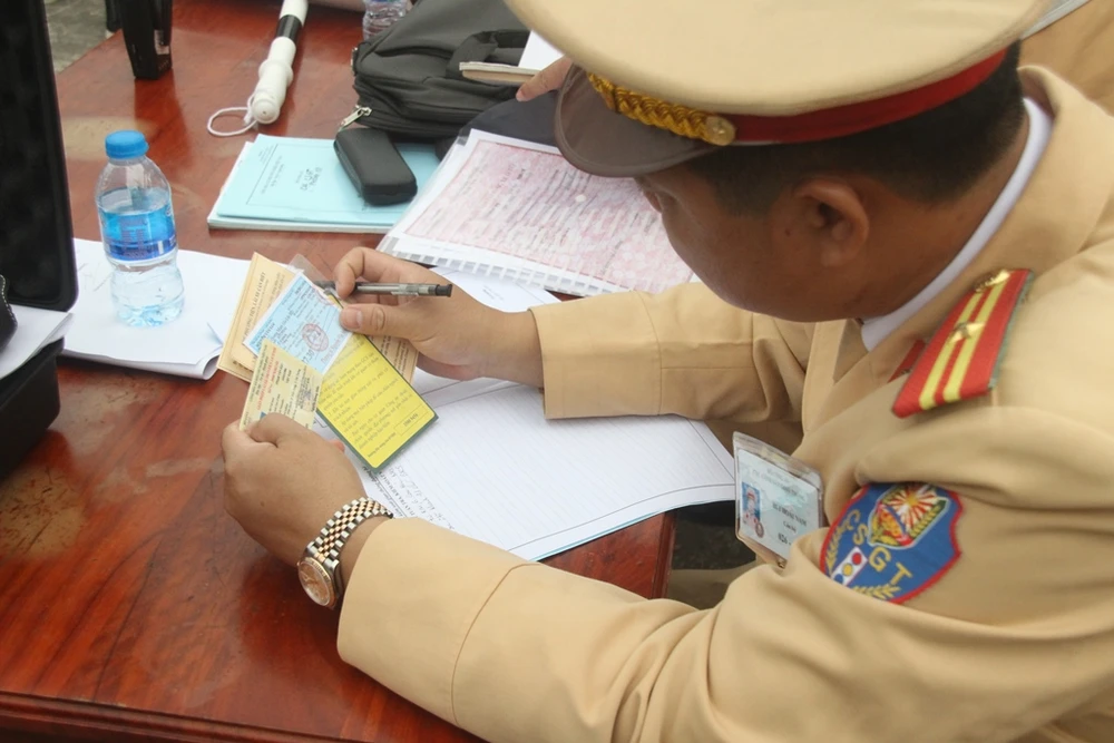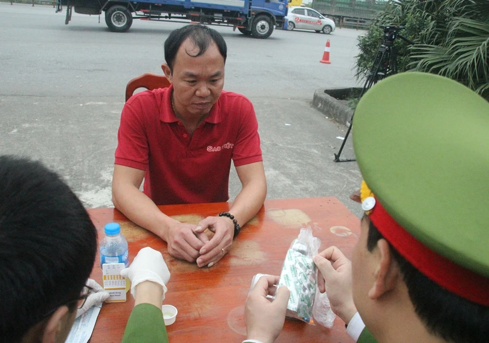 Mỗi tài xế xuống xe đều xuất trình giấy tờ, sau đó được mời đến chốt làm việc của cảnh sát. Tại đây, CSGT sẽ sử dụng máy chuyên dụng để đo nồng độ cồn của các tài xế, nếu không phát hiện vi phạm thì tiếp tục mời sang bàn lấy nước tiểu.