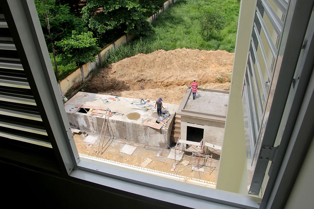 Hệ thống xử lý nước thải bên hong KTX Cỏ May đang tích cực được triển khai nhằm đảm bảo kịp tiến độ hoàn thành phục vụ sinh viên trong năm học mới